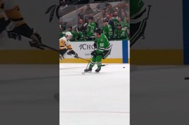 Dallas met en vedette l’attaquant Evgenii Dadonov des muscles devant le défenseur des Penguins de Pittsburgh, Erik Karlsson, allume les…