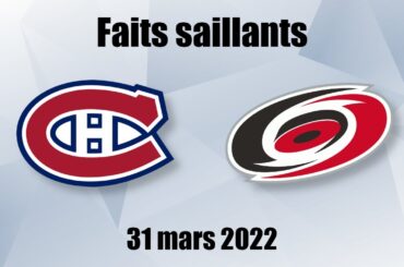 Voici des faits saillants du match qui opposait les Canadiens de Montréal aux Hurricanes de la Caroline le 31 mars…