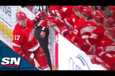 Regardez Joe Veleno des Red Wings de Détroit profiter d’un revirement bâclé dans la zone défensive de Jacob Bernard-Docker des…