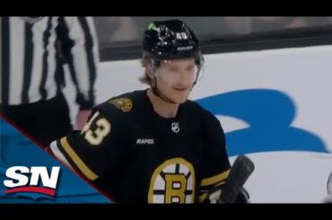 Regardez l’attaquant des Bruins de Boston Danton Heinen récupérer une passe de Charlie Coyle, se diriger vers le filet et…