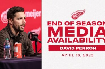L’attaquant des Red Wings de Détroit, David Perron, s’entretient avec les médias après la saison 2022-23.