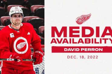 L’attaquant des Red Wings David Perron s’entretient avec les médias après l’entraînement de Detroit le dimanche 18 décembre 2022 au…
