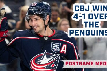 Boone Jenner, Zach Werenski et l’entraîneur-chef Dean Evason parlent aux médias après le match de ce soir contre les Capitals…