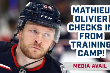Jake Christiansen parle aux médias avant le premier match de pré-saison de ce soir au Nationwide Arena contre les Blues…