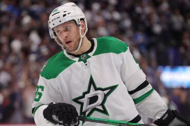 Le défenseur des stars de Dallas Mikko Rantanen marque un tour de chapeau naturel dans la deuxième période du match…