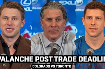 Erik Johnson, Charlie Coyle et Jared Bednar Press Conference après les délais du commerce de la LNH de Colorado Avalanche…