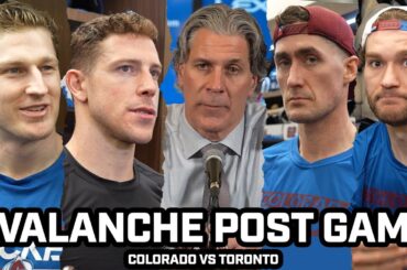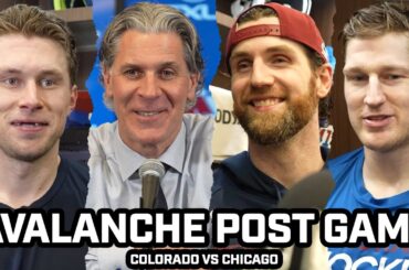 Jared Bednar, Nathan Mackinnon, Scott Wedgewood et Erik Johnson Press Conference après Colorado Avalanche Win at Home vs Chicago Blackhawks…
