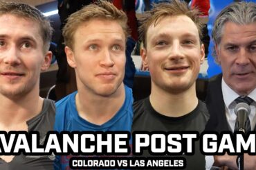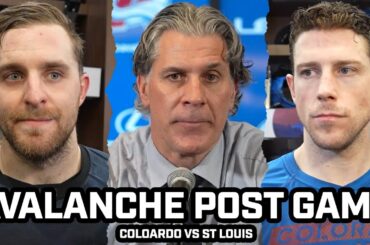 Jared Bednar, Charlie Coyle et Devon Toews Press Conference dans Colorado Avalanche Verseger Room After Avalanche 11 Game Home Win…
