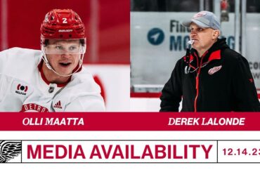 Olli Maatta et Derek Lalonde parlent avec les médias avant le match de Détroit contre les Hurricanes de la Caroline…
