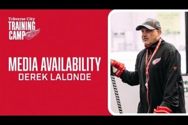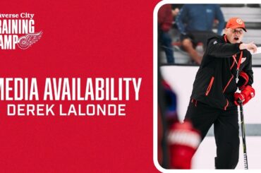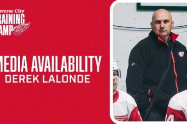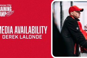 L’entraîneur-chef des Red Wings, Derek Lalonde, s’entretient avec les médias après le cinquième jour du camp d’entraînement de Détroit au…