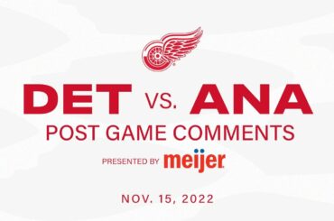 David Perron, Moritz Seider, Joe Veleno et l’entraîneur Lalonde discutent avec les médias après le match de jeudi soir contre…