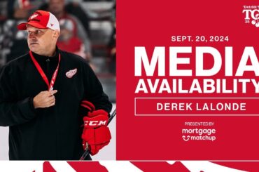 Derek Lalonde s’adresse aux médias lors de la deuxième journée du camp d’entraînement au Centre Ice Arena de Traverse City,…