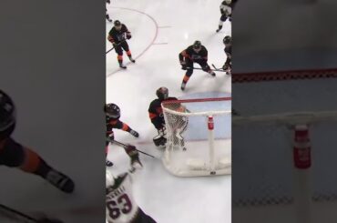 Les Islanders Calum Ritchie marquent un but en avantage numérique contre le Lightning après que la rondelle ait décollé des…