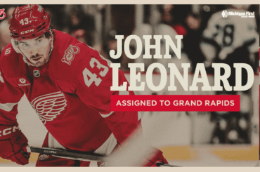 JT Compher, Alex DeBrincat et Todd McLellan parlent aux médias après le match de Détroit contre les Canadiens de Montréal,…