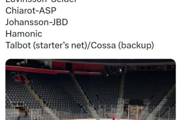 Jeu de puissance des RedWings : DeBrincat (filet avant), Larkin (pare-chocs), Raymond-Kane (flancs), Seider (point). JVR (filet avant), Copp (pare-chocs), ASP-Kasper/Finnie…
