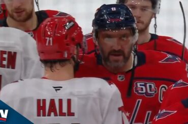 Regardez les Capitals de Washington et les Hurricanes de Caroline échanger des poignées de main après leur victoire de la…