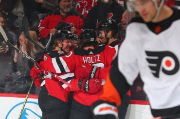 L’attaquant des Devils Jack Hughes ouvre le score en manœuvrant habilement à travers les joueurs des Flyers pour marquer par…