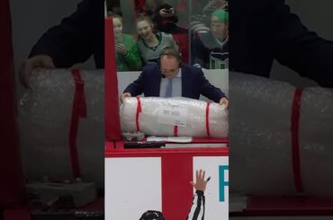 L’équipe de relations publiques de Carolina Hurricanes s’assure que le diffuseur de Buffalo Sabres, Rob Ray (« Rayzor ») reste en sécurité…