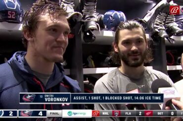 Boone Jenner, Erik Gudbranson, Dmitri Voronkov et l’entraîneur-chef Pascal Vincent parlent aux médias après la victoire contre le Lightning. Suivez…
