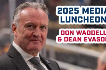 Le directeur général Don Waddell et l’entraîneur-chef Dean Evason parlent aux médias lors du déjeuner annuel des médias Blue Jackets…