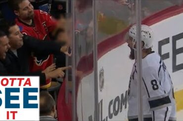 Regardez Drew Doughty narguer les partisans au Scotiabank Saddledome après avoir marqué en prolongation pour donner aux Kings la victoire…