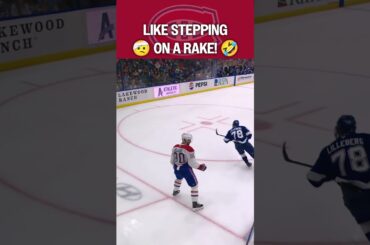 L’attaquant des Canadiens de Montréal Joe Veleno se fait coincer son bâton dans le filet et son maillot alors qu’il…