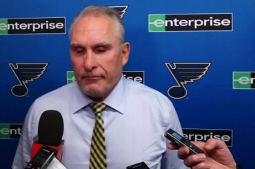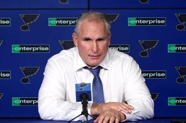 L’entraîneur des St. Louis Blues, Craig Berube, et les joueurs Robert Bortuzzo et Robert Thomas, le jeudi 3 novembre 2022,…