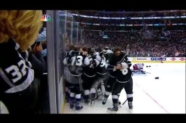 Les Kings de Los Angeles prennent d’assaut la glace après que le défenseur Alec Martinez a enterré le vainqueur du…