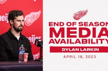 Le capitaine des Red Wings de Détroit, Dylan Larkin, s’entretient avec les médias après la saison 2022-23.