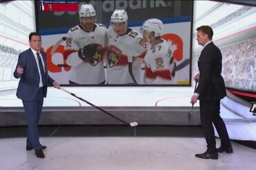 L’attaquant des Golden Knights de Vegas, Jack Eichel, perd son bâton mais pas le jeu, alors qu’il se précipite pour…