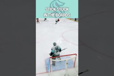 Le gardien du Kraken, Joey Daccord, est capable de récupérer après que son bâton soit resté coincé dans les planches…