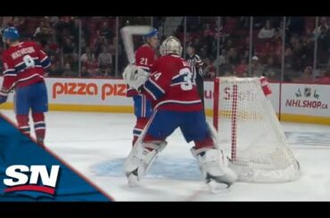 Regardez le gardien des Canadiens Jake Allen casser son bâton de frustration après que Jeff Skinner ait marqué son deuxième…