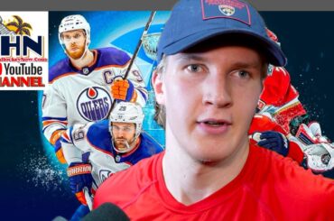 Le centre des Panthers de la Floride, Anton Lundell, parle après que son équipe ait battu la visite des Oilers…