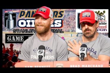 Les Panthers de la Floride Sam Bennett et Brad Marchand ont rencontré les médias après que leur équipe a battu…