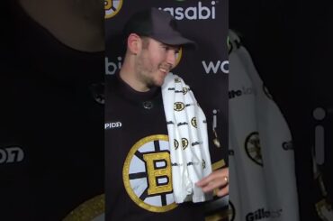 Le gardien des Bruins de Boston, Brandon Bussi, réalise un arrêt du gant contre l’attaquant des Rangers de New York…