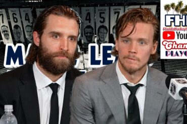 Le défenseur des Panthers de la Floride, Aaron Ekblad, parle aux médias après que son équipe ait perdu le match…