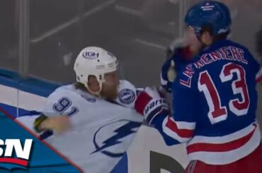 Regardez les Rangers de New York et le Lightning de Tampa Bay entrer dedans quelques instants après le buzzer final…