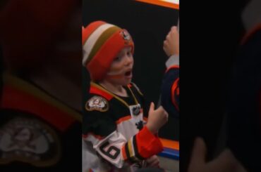 Le gardien de but des Ducks d’Anaheim, John Gibson, fait la soirée d’un jeune fan en lui donnant un bâton…
