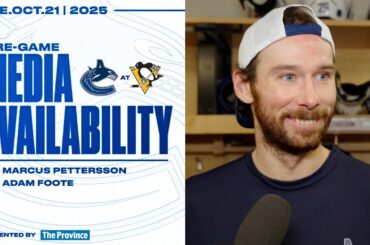 Marcus Pettersson et l’entraîneur-chef Adam Foote s’entretiennent avec les médias avant le match de ce soir à Pittsburgh. Si vous…