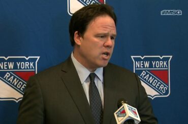 Les Rangers de New York et l’entraîneur-chef Peter Laviolette s’entretiennent avec les médias après une victoire confiante dans le premier…
