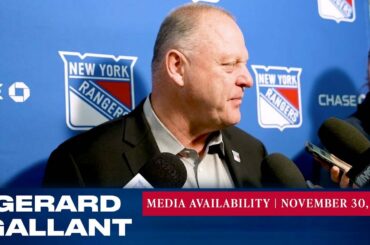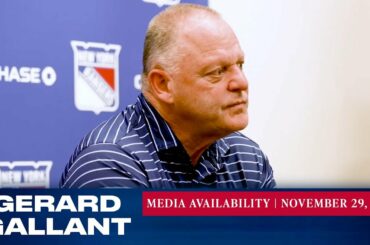L’entraîneur-chef des Rangers de New York, Gerard Gallant, répond aux questions des médias après l’entraînement du 29 novembre. » Abonnez-vous…