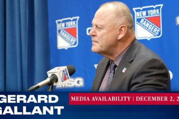 L’entraîneur-chef des Rangers de New York, Gerard Gallant, répond aux questions des médias avant le match du 2 décembre contre…