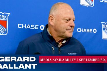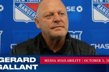 L’entraîneur-chef des Rangers de New York, Gerard Gallant, répond aux questions des médias après l’entraînement du 3 octobre. » Abonnez-vous…