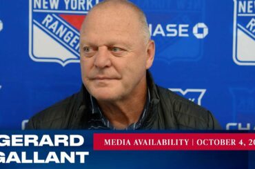 L’entraîneur-chef des Rangers de New York, Gerard Gallant, répond aux questions des médias après l’entraînement du 4 octobre. » Abonnez-vous…