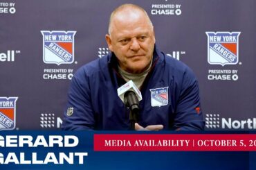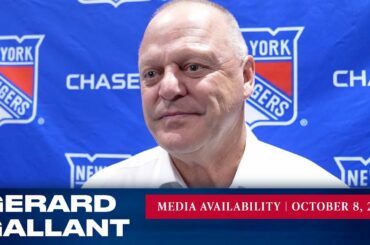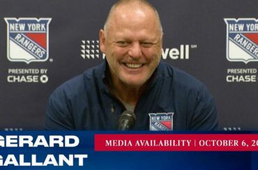L’entraîneur-chef des Rangers de New York, Gerard Gallant, répond aux questions des médias après l’entraînement du 6 octobre. » Abonnez-vous…