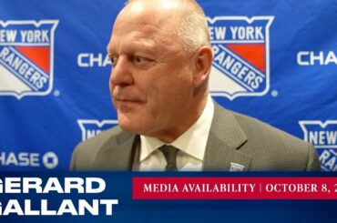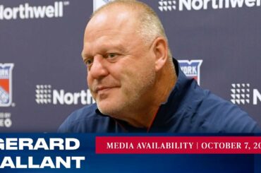 L’entraîneur-chef des Rangers de New York, Gerard Gallant, répond aux questions des médias après l’entraînement du 7 octobre. » Abonnez-vous…