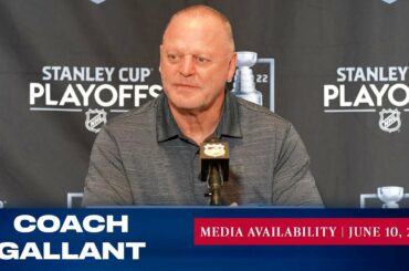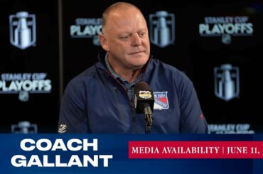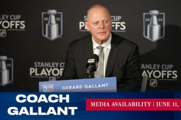 L’entraîneur-chef des Rangers de New York, Gerard Gallant, répond aux questions des médias avant le match du 11 juin contre…