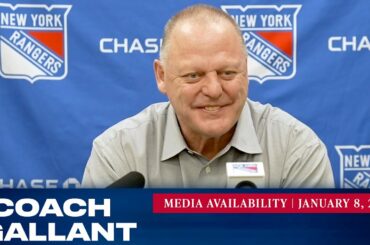 L’entraîneur des Rangers de New York, Gerard Gallant, répond aux questions des médias avant le match du 8 janvier contre…