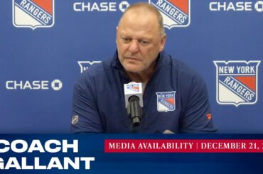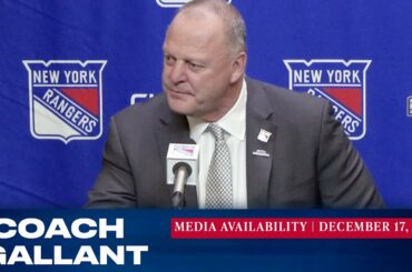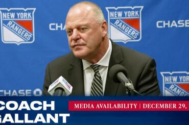 L’entraîneur des Rangers de New York, Gerard Gallant, répond aux questions des médias avant le 31 décembre contre le Tampa…