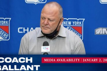 L’entraîneur des Rangers de New York, Gerard Gallant, répond aux questions des médias avant le match du 2 janvier contre…